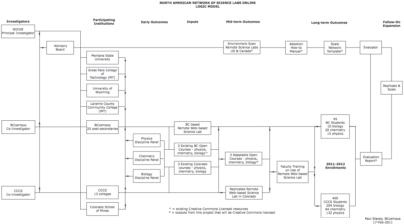 - creating a Scale Network Template that looks at the policies, procedures, business model and sustainability factors associated with establishing a North American Network of Science Labs Online